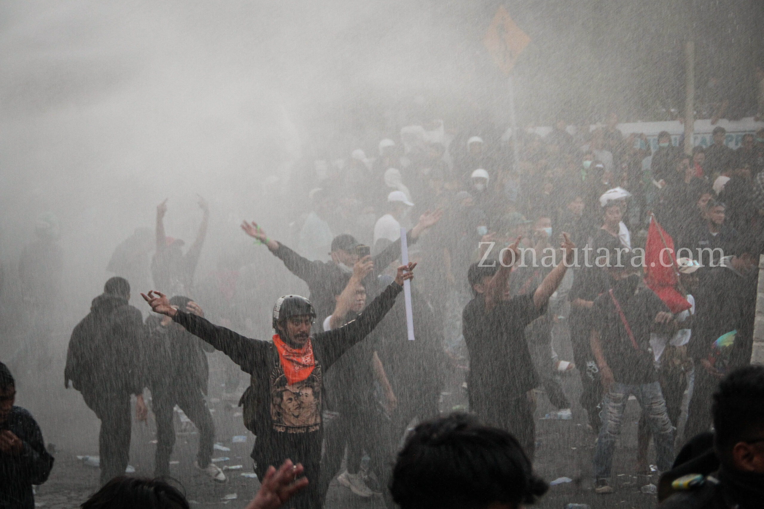 Setibanya di lokasi, demonstran berusaha masuk ke halaman gedung, namun hanya perwakilan yang diperbolehkan. Ketegangan meningkat saat barisan aparat dan sejumlah organisasi masyarakat menghadang massa.