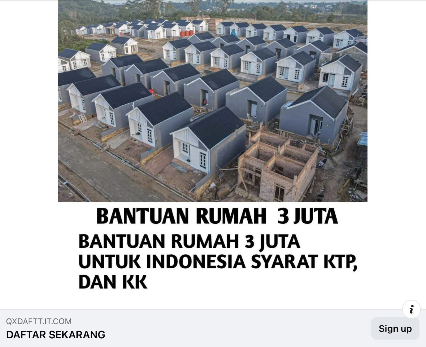 Tim cek fakta ZONAUTARA.com melakukan penelusuran dengan mengunjungi tautan tersebut dan ternyata tautan yang dibagikan tidak mengarah pada laman resmi Kementerian Perumahan dan Kawasan Permukiman (PKP) atau instansi pemerintah lainnya.